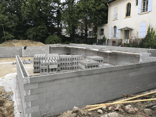 Création d'un sous-sol semi enterré en bloc à bancher.