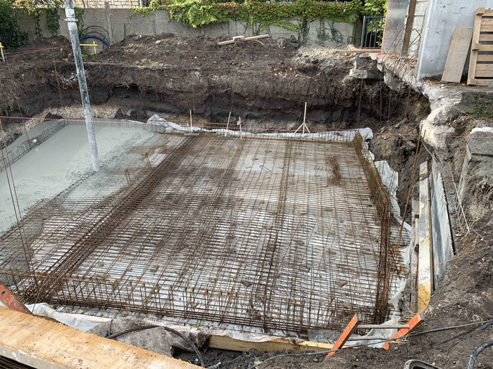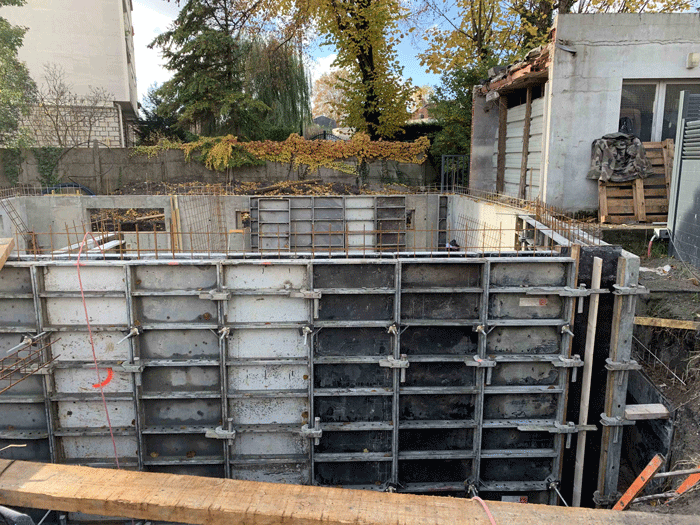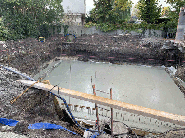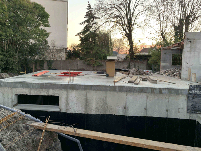 Construction en bloc à bancher pour le sous sol et en Brique pour le RDC et l'étage.